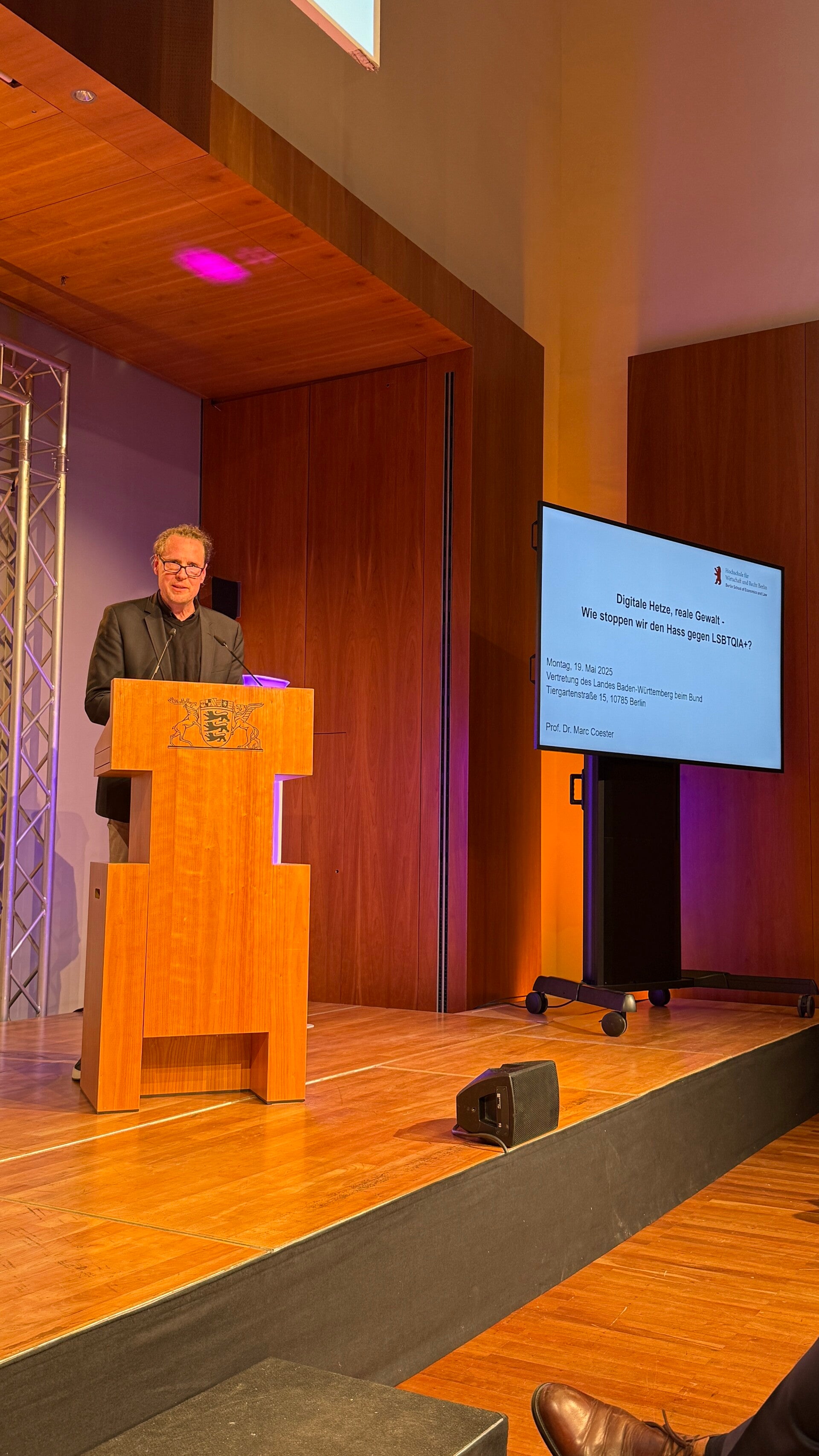 Prof. Dr. Marc Coester, Professor für Kriminologie an der officialhwrberlin führte in das Thema mit Zahlen und Fakten ein.