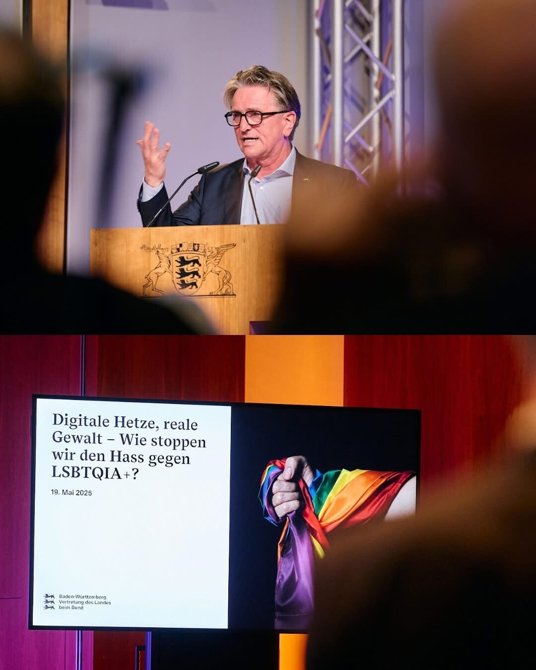 Dieses ernste Thema stand im Mittelpunkt der diesjährigen Veranstaltung zu LSBTQIA+-Perspektiven. Die Gäste wurden von Manne Lucha (Sozialminister) begrüßt.