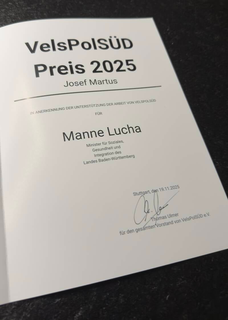 Der VelsPolSÜD-Preis ist ein Zeichen des Gedenkens an Josef Martus, aber auch ein Aufruf, die Lehren aus der Vergangenheit in die gegenwärtige und zukünftige Arbeit aller staatlichen Institutionen zu integrieren.
