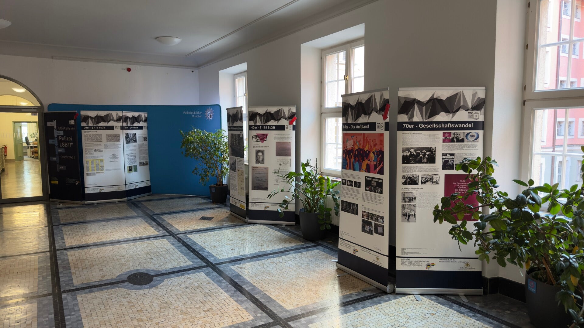 Unter dem Leitmotiv „Nur wer die Geschichte kennt, kann die Gegenwart verstehen“ wurde Anfang Juli die Ausstellung „Polizei · LSBTIQ · Geschichte(n)“ im Foyer des Bayerischen Landeskriminalamtes (BLKA) feierlich eröffnet. Die Eröffnung erfolgte durch den Präsidenten des BLKA, Norbert Radmacher, gemeinsam mit dem Vorstandsvorsitzenden von VelsPol Süd, Thomas Ulmer.