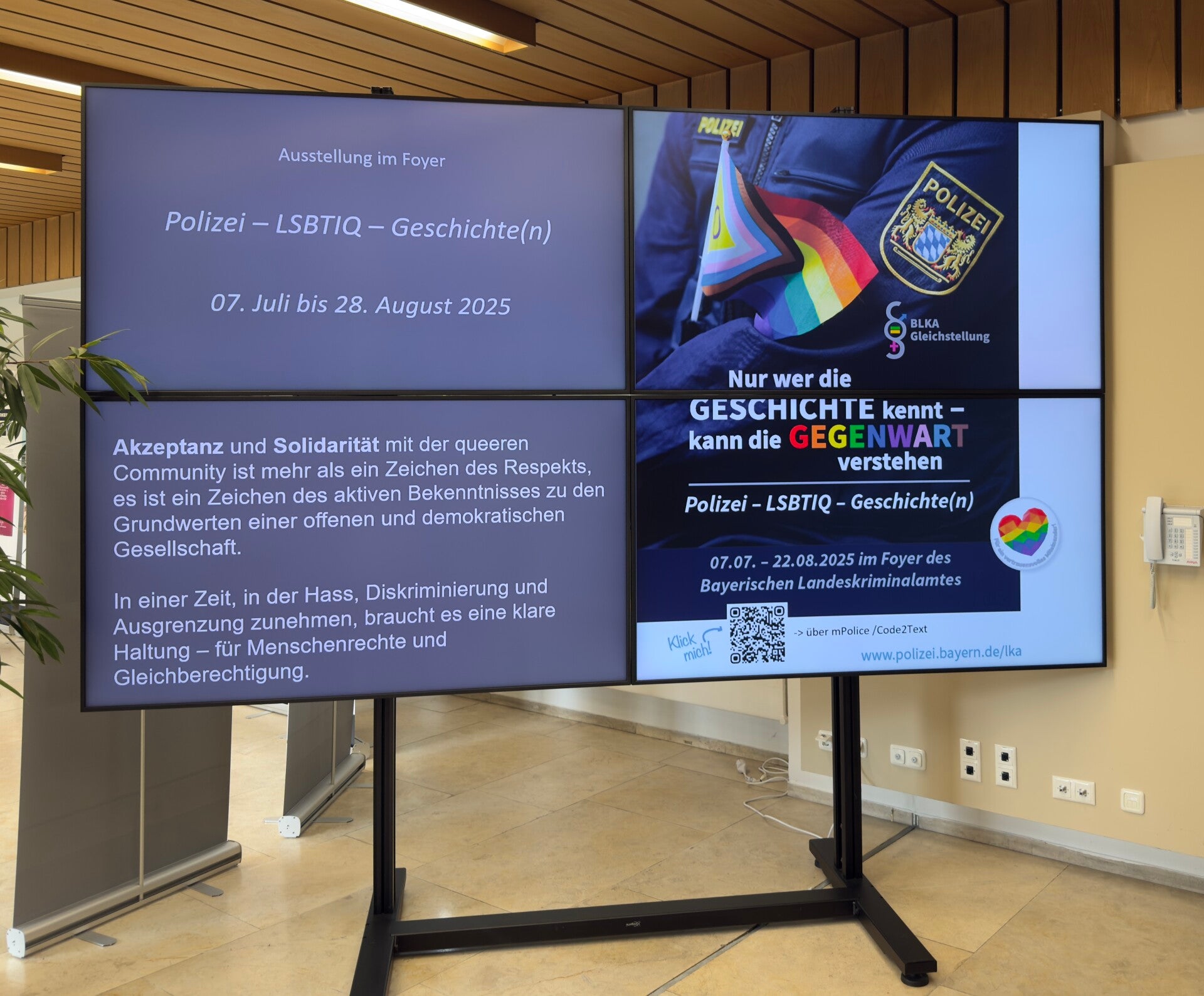 So hatte das BLKA für seine Ausstellung über queere Menschen und Polizei geworben. Das Polizeipräsidium München durfte die Ausstellung übernehmen und das Motto gleich mit.